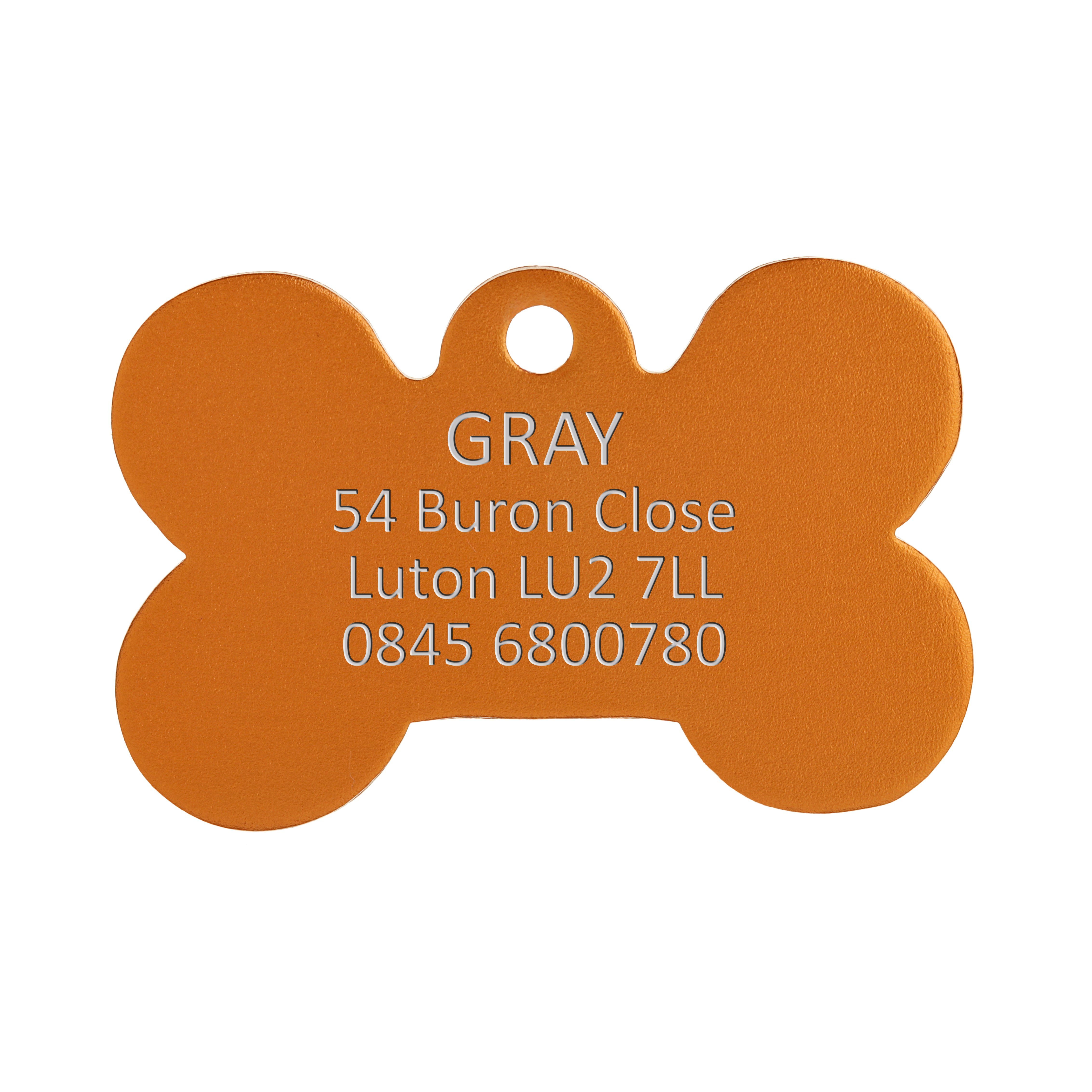 Bright, lightweight, and built for everyday wear — the Aluminium Orange Bone Pet Tag is a simple, highly visible way to keep your dog safe and identifiable. Made from durable anodised aluminium with a vibrant orange finish, this tag includes custom engraving on both sides, giving you extra room for phone numbers, addresses, or medical alerts.