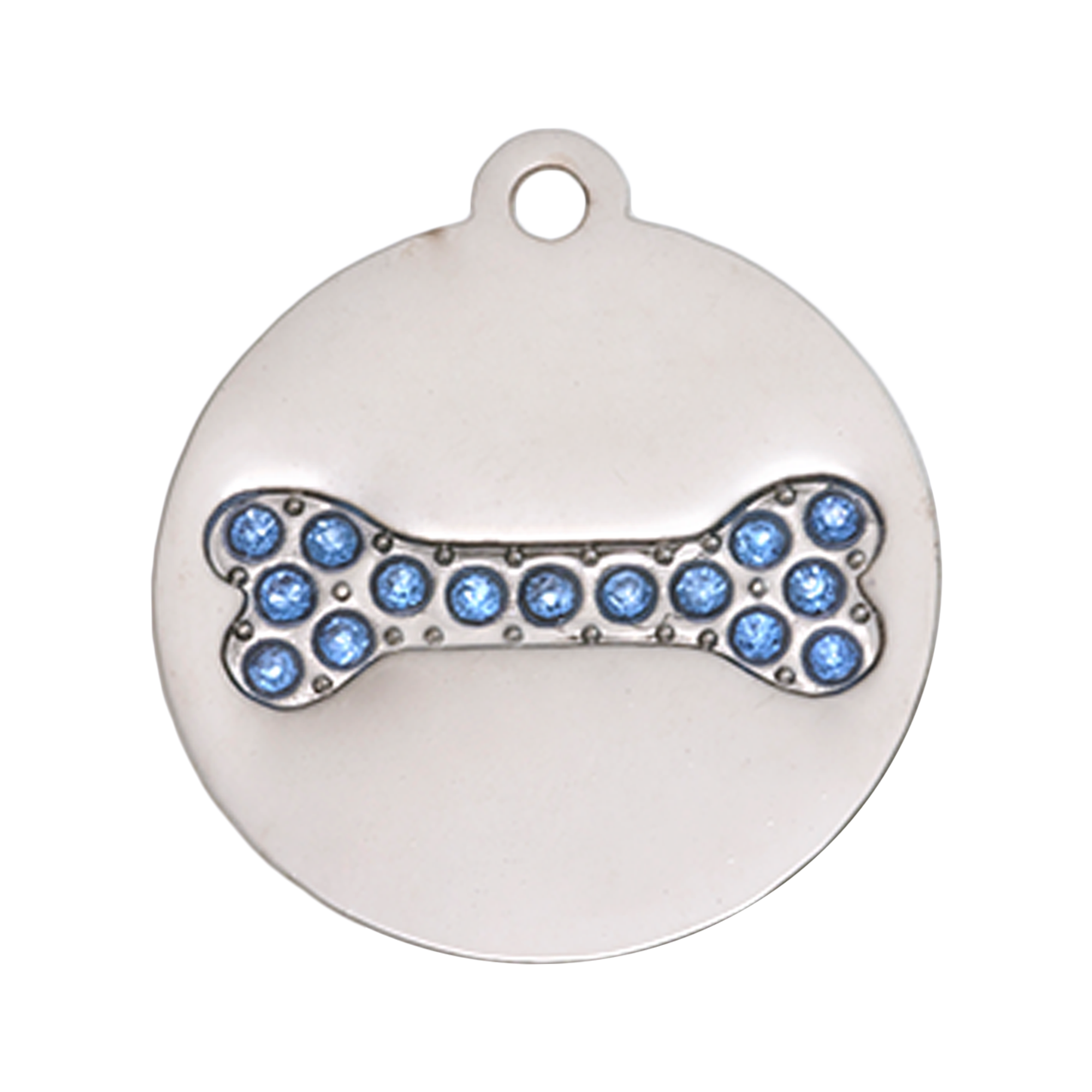 This 22 mm round tag features a ring of sparkling crystals set against a polished stainless-steel background, offering a dash of elegance without weight. The reverse panel accommodates up to 3 lines of laser-engraved text—ideal for contact info that stays crisp and clear.