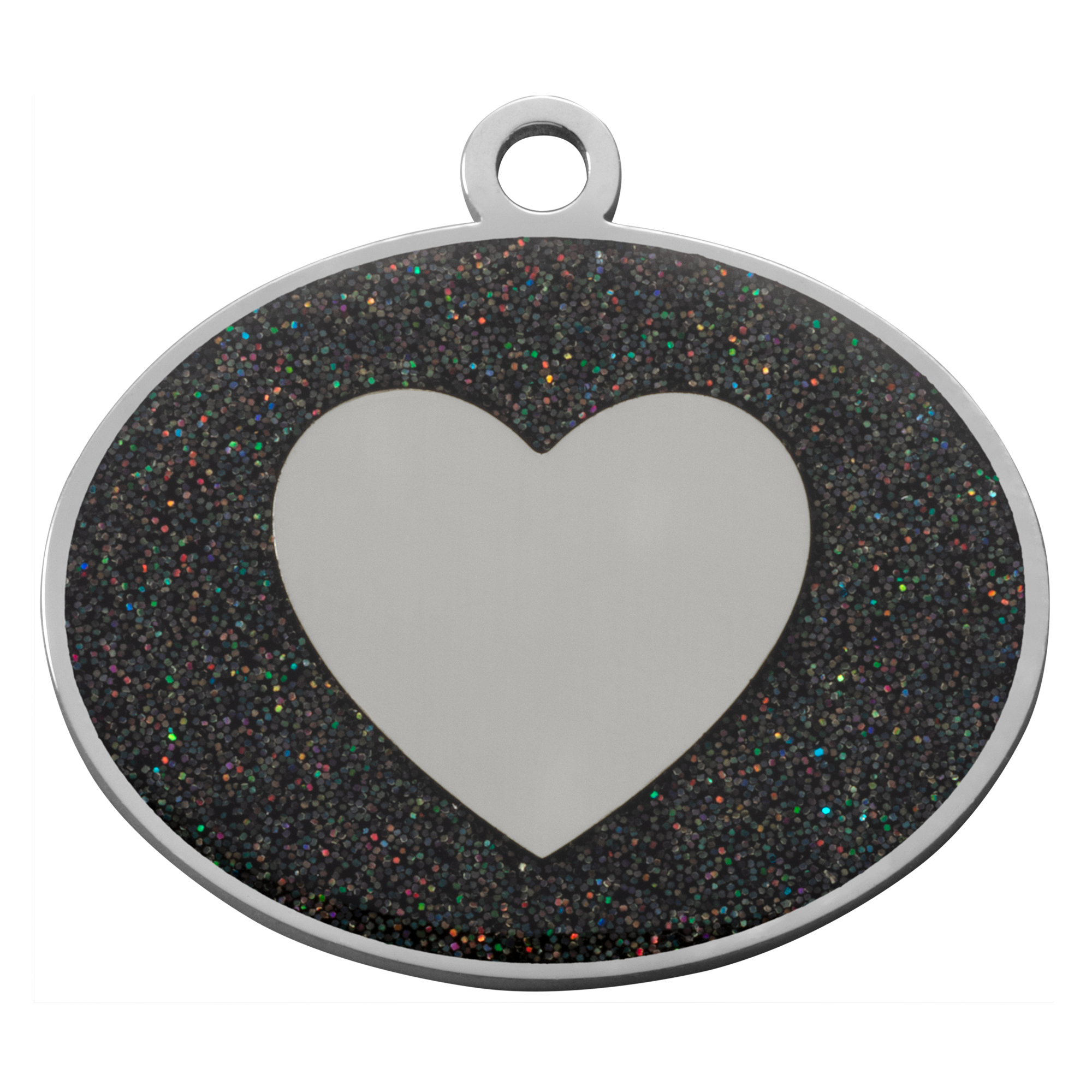 Black Glitter Oval Heart Pet Tag