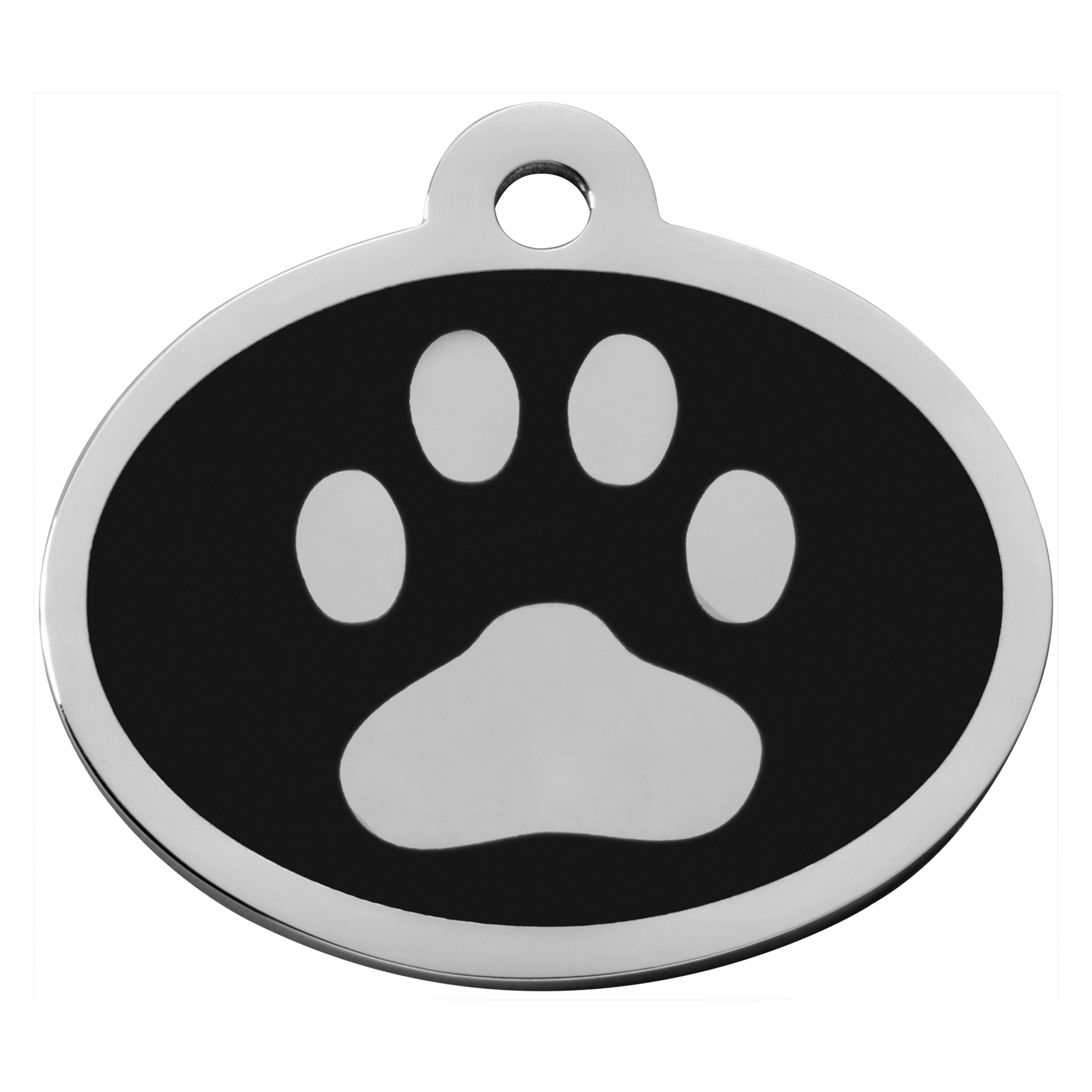 The Pet Tag Black - Oval Paw is perfect for dogs or cats who deserve a little extra personality with their protection.